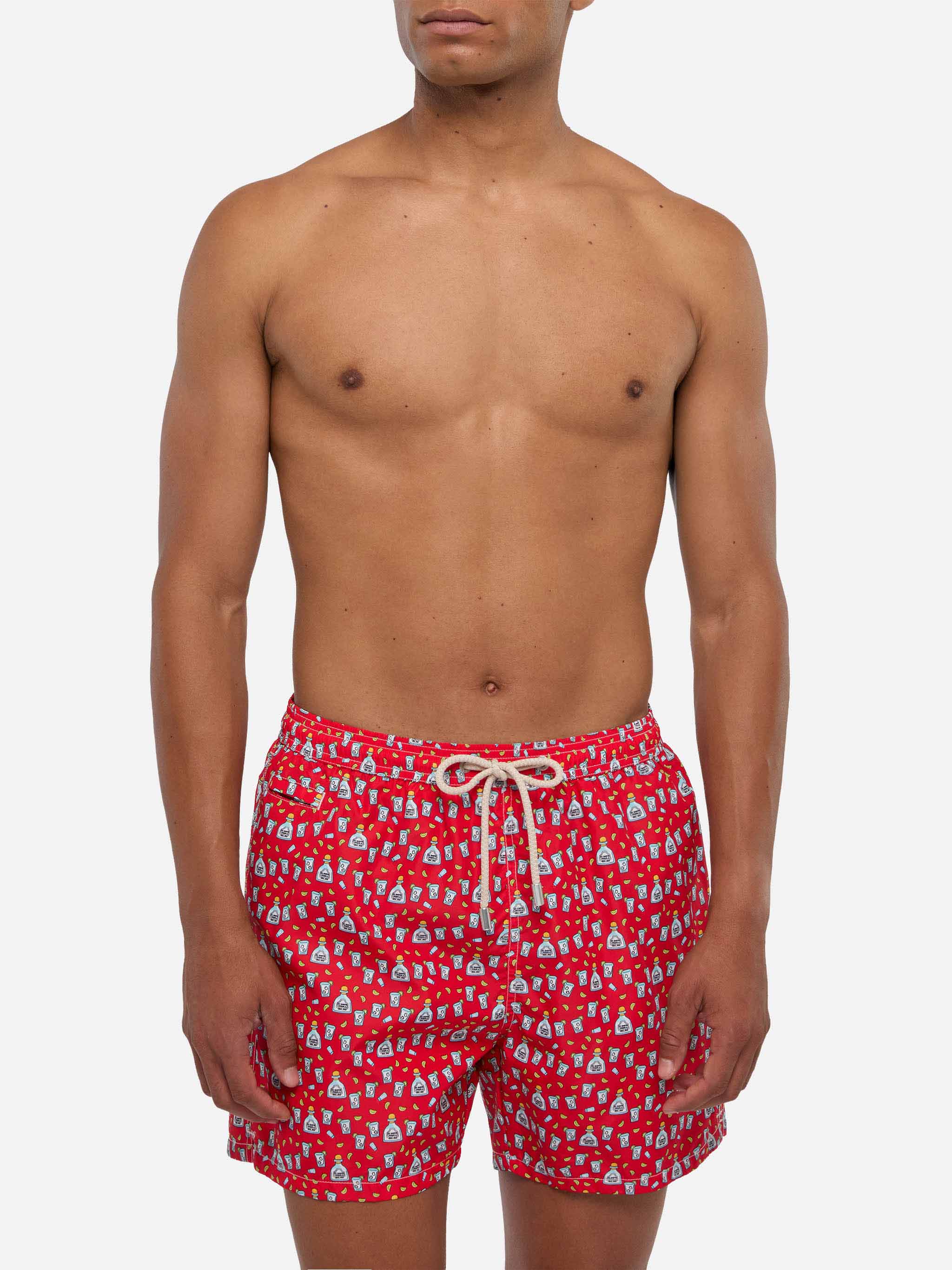 Man light fabric swim shorts with Tequila print